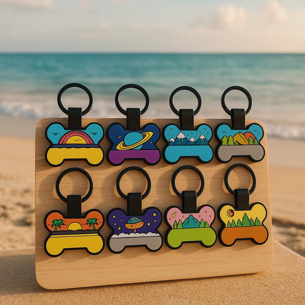 Dale un toque único a tu mascota con nuestros colgantes de diseños exclusivos : montañas, atardeceres, paisajes y mucho más.